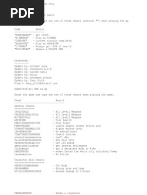 Car Damage Proof Gta Vice City Cheat Codes For Swimming Pdf